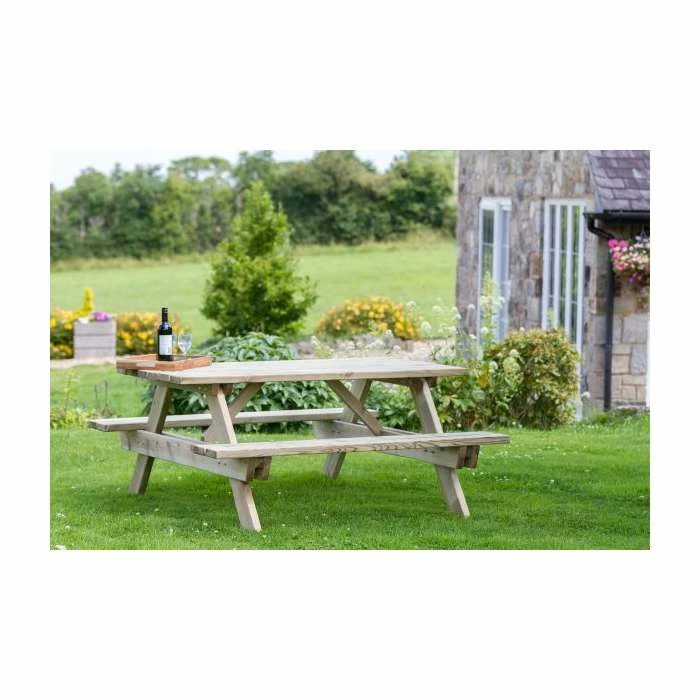 Provide a comfortable dining experience for friends and family with this beautiful softwood picnic table. The tabletop and benches are 1.6m wide so there will be plenty of room for everyone to eat comfortably. The wood used in the structure is very hardy, as it has been pressure treated to protect against rot. At least 70% of the timber has been sourced from quality forests so if you are concerned for the environment then you can purchase this table with a clear conscience. Enjoy spending time in your garden whether you are hosting a barbecue or simply relaxing outside with a newspaper.