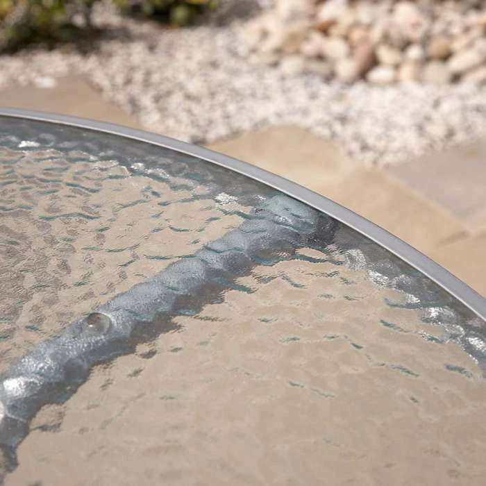 This furniture set has been manufactured with silver powder coated tubular steel frames for a sturdy and rigid construction. The set includes a table with a glass top and 4 chairs. This is an extremely durable material with waterproof properties. It has been designed to handle heavy weight. It is also very simple to clean and maintain and has a strong resistance to rot, which can affect other cloth-based furniture. Completing the set is a parasol made from polyester. The parasol can be adjusted to the required height/angle and will provide shade from sunlight.