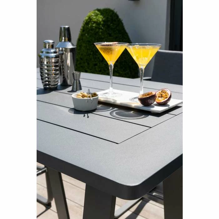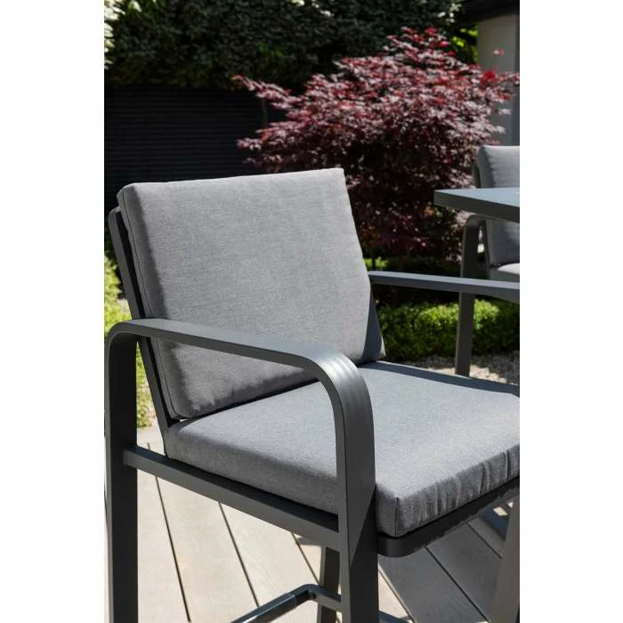 Handpicked is the go-to brand for the latest trends, one-offs and feature items that provide those finishing seasonal touches and wow factors for that bit of luxury you have been looking for. Discover hidden gems that bring a smile to your face and sets your garden apart. The Babingley bar comes with four chairs, aluminium frame in anthracite colour with curved edges for comfort.