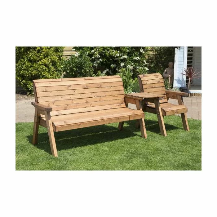 This comfortable four seater bench set built from strong and long lasting hardwood boasts years of enjoyment with friends and loved ones. The classic design of this bench and chair set enters a new level of versatility with the addition of a detachable tray. The tray is a practical and elegant touch to the otherwise traditional style of the Four Seater Companion Set.