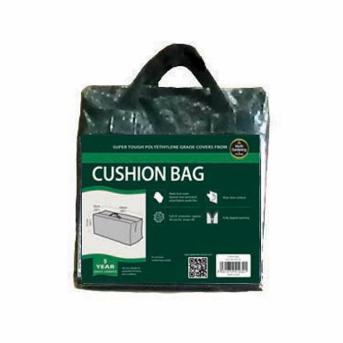 Neatly store your outdoor cushions with this green cushion bag, helpfully designed with a fully zipped opening and carry handle for convenient usage. Made from multi-layered cross-laminated polyethylene grade material, the cover is UV resistant, and can be easily wiped clean if need be. The dark green colour blends easily into a garden setting, while its space conscious design means it can easily be stashed out of sight.
