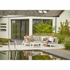 Mallorca Corner Sofa Set with Side Tables in White by Norfolk Leisure