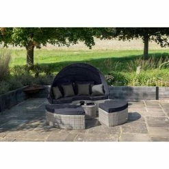 ‘Peony’ Luxury Rattan Modular Daybed Sofa Set with Retractable Canopy in Pebble by Primrose Living