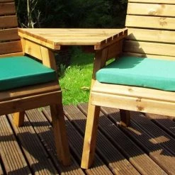 Wooden Garden Love Seat with Green Cushions and Fitted Cover