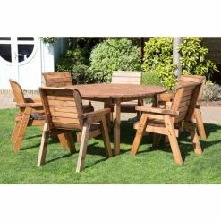 Charles Taylor Wooden Garden 6 Seater Round Table Dining Set with Green Cushions and Parasol