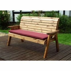 Charles Taylor Wooden Garden 3 Seater Winchester Bench with Burgundy Cushions and Fitted Cover