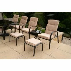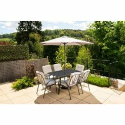 Hadleigh 6 Seater Stone Glass Garden Dining Furniture Set In Grey by Hectare