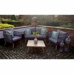 Lifestyle Metal 8 Seater Garden Corner Sofa Set with Rectangular Fire Pit Table by Primrose Living