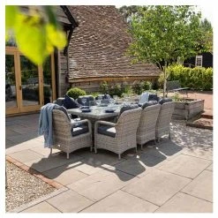 Luxury Rattan 8 Seater Oval Garden Dining Set in Pebble by Primrose Living