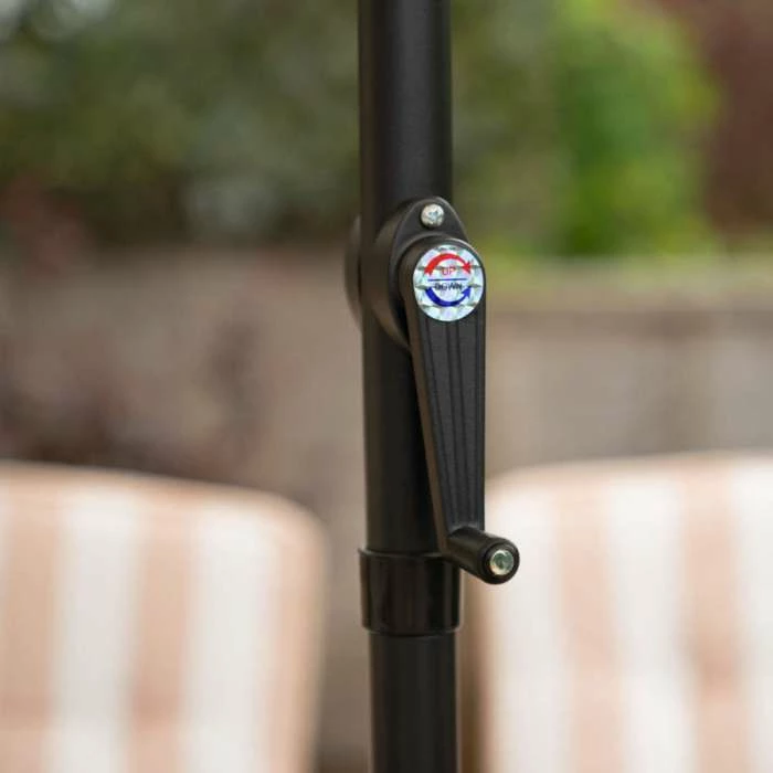 This brilliant six seater garden dining set is perfect for enjoying a big family lunch in the sunshine. With a fantastic high quality parasol that comes with its own crank you can enjoy spending time in your garden without having to worry about the harsh heat. The gorgeous reversible cushions are thick, luxurious and highly versatile. Made from extremely durable powder coated steel this dining set has excellent resistance to adverse weather conditions and is easy to put together.