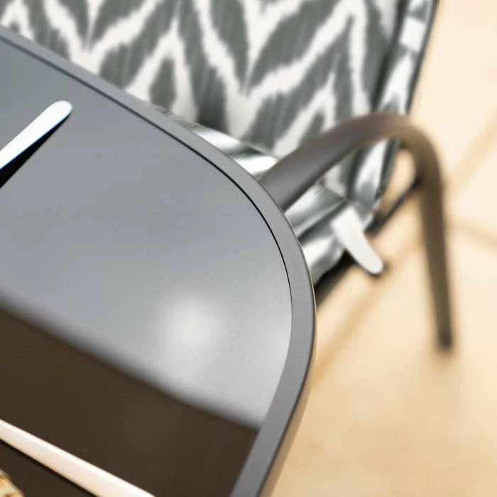 - Complementary grey table and chair frames