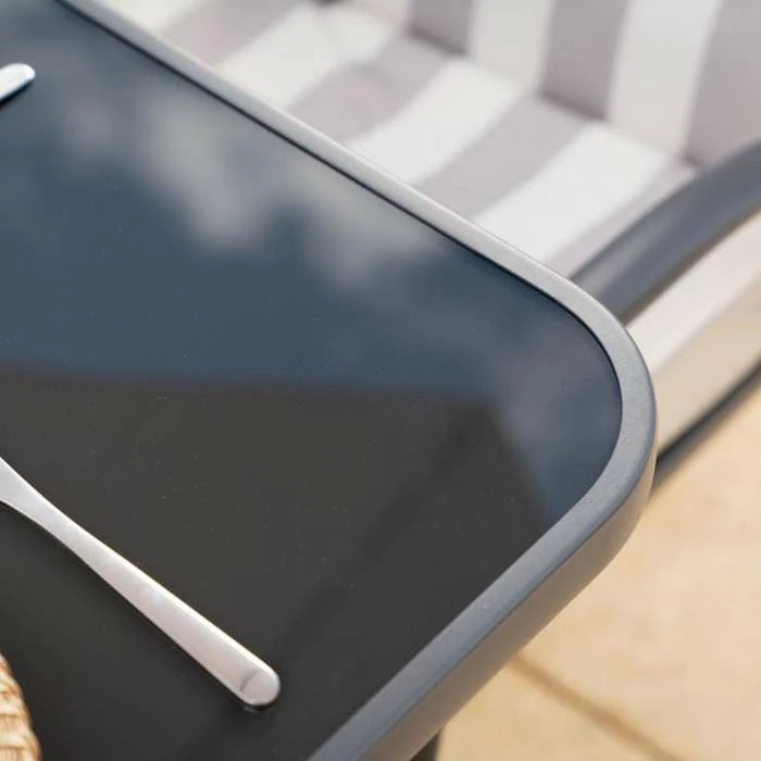 - Complementary grey table and chair frames – strong and striking
