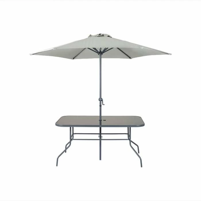 - Parasol with Crank– 150g grey polyester parasol with crank for easy opening