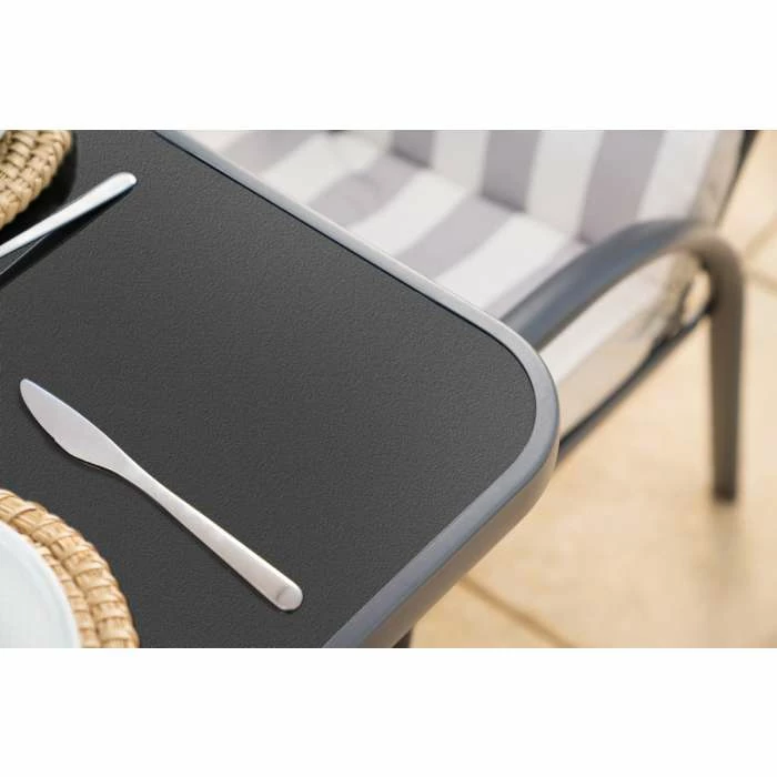 The gorgeous reversible cushions are thick, luxurious and highly versatile. Made from extremely durable powder-coated steel this dining set has excellent resistance to adverse weather conditions and is easy to put together.