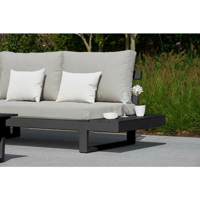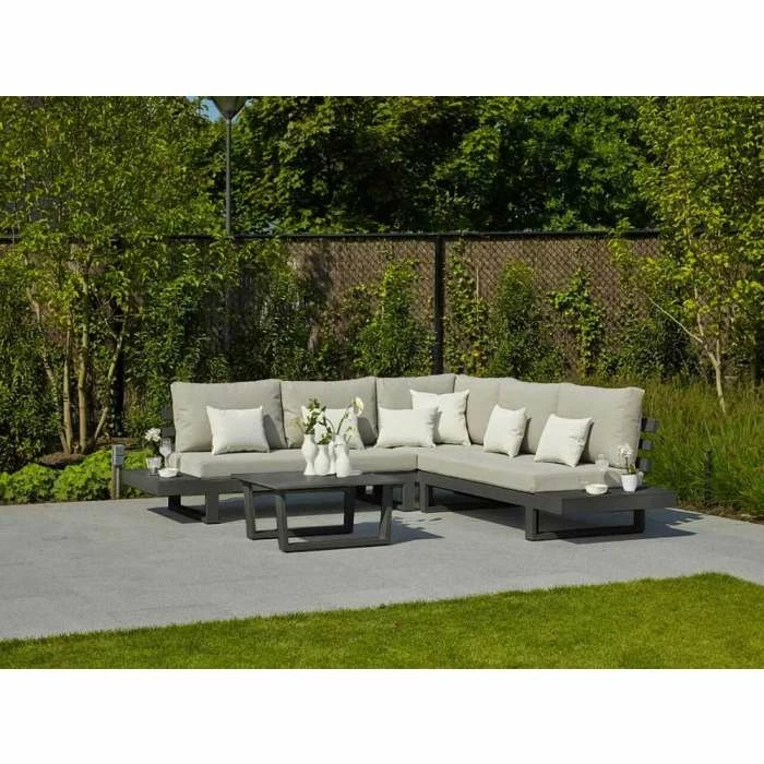 The open-bar and minimal look of the Ibiza Corner Set will assure your garden or balcony will still feel spacious. The range comes in the ever-popular lava frame, complimented by our Mouse Grey soft touch All Weather cushions.