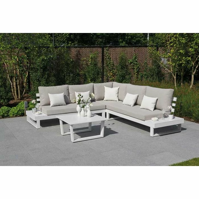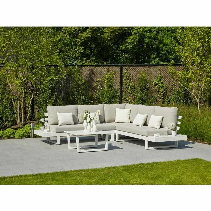 Ibiza Weatherproof Corner Sofa Set with Coffee Table in White by Norfolk Leisure