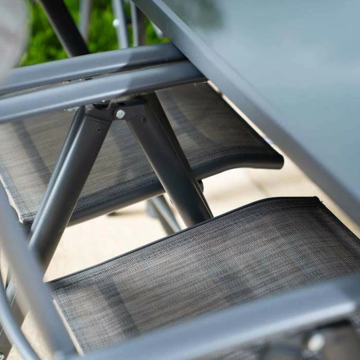 - Complementary grey table and chair frames