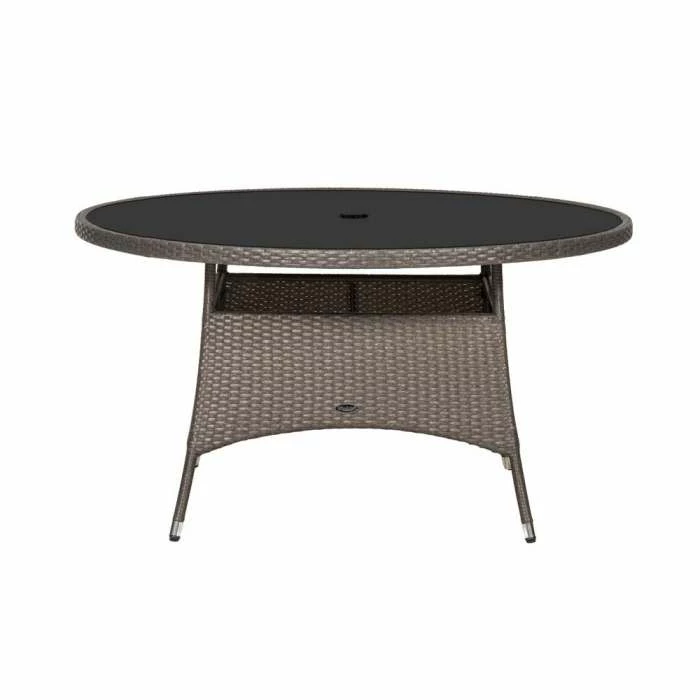 The Marlow 6 seater dining set comes complete with 6 stacking chairs, with seat pads and 140cm inlay, tempered glass top table with built in parasol hole. It is the perfect setting for outdoor lunch or dining or to relax with a drink. Made from the highest quality polyethylene double round wicker around a rigid aluminium frame its durable and weather resistant for use all year round.