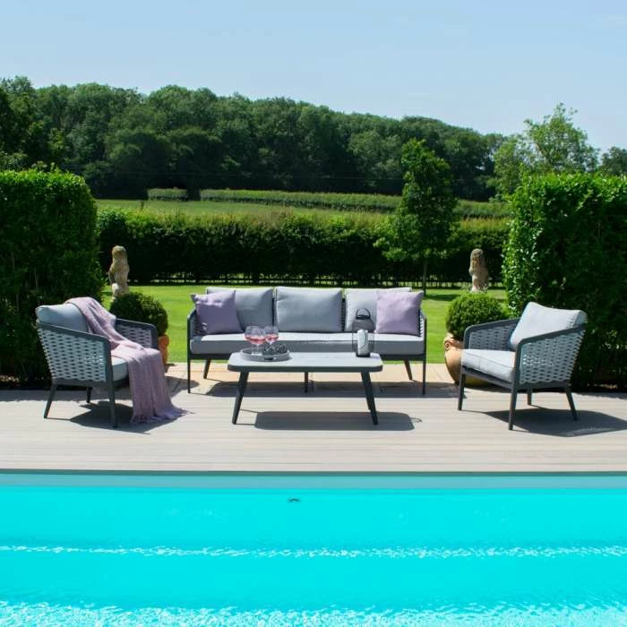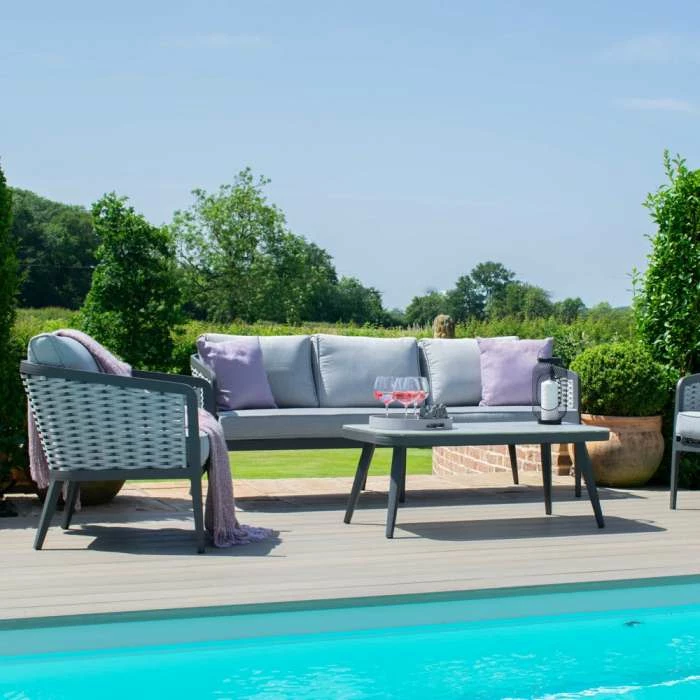 ‘Iris’ Luxury Rattan 5 Seater Garden Sofa Set with Box Coffee Table in Stone by Primrose Living