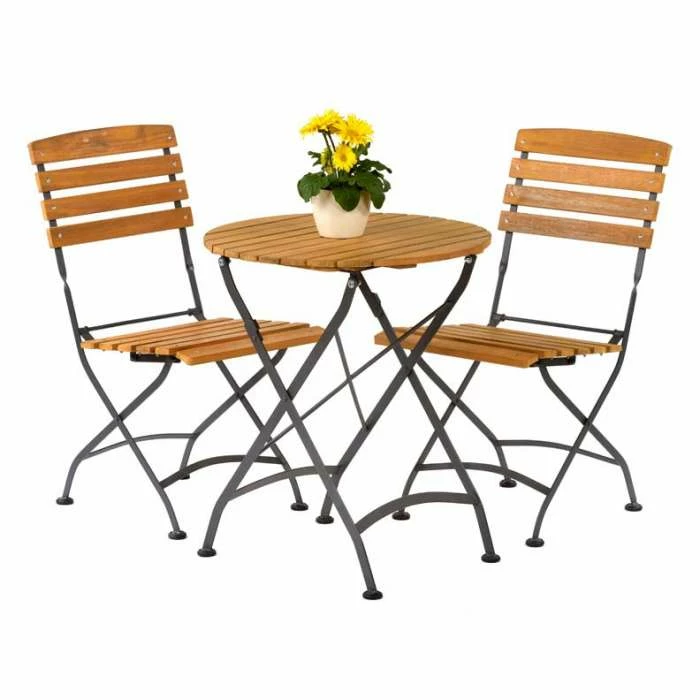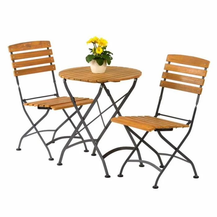 This folding dining set comes complete with a folding bistro round table and two side chairs. With easy-wipe surfaces and strong steel frames, this dining set is easy to store away when not needed, is virtually maintenance-free and can be left outside in all weathers. Ideal for both indoor or outdoor use.