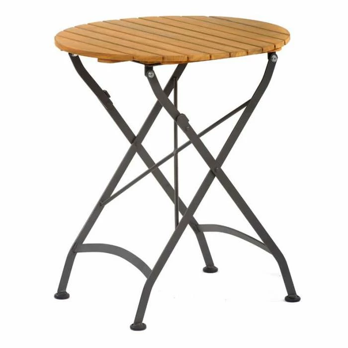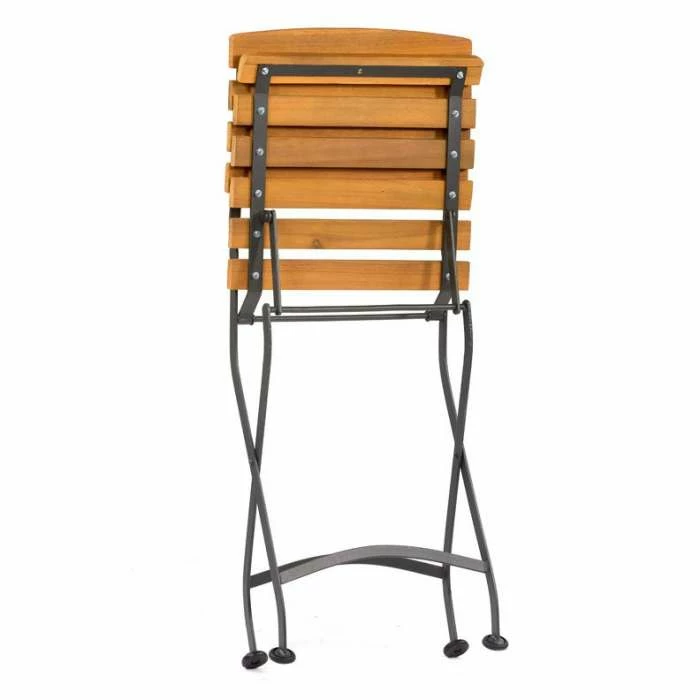 The steel frames of both the table and side chairs are powder coated so they will never rust or decay. The wooden tabletop, seat pads and backrests are made from Acacia wood and are stained for a smooth finish that is warm to the touch and comfortable to use. The wood is sourced from sustainable and renewable resources.