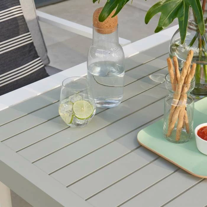 The Titchwell 4 seater dining set with aluminium slatted table top has been developed with both comfort and style foremost. This range is further enhanced by the showerproof cushions, a durable mix of acrylic and polyester with a showerproof coated inner.