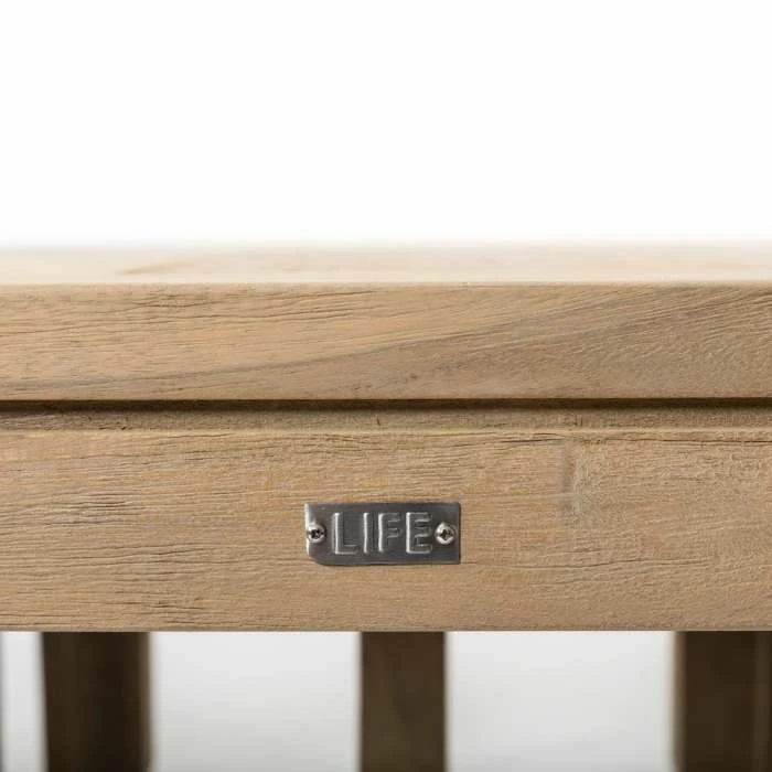 Fine dining, with rattan chairs and an extra strong teak table – no corners cut. The table is solid and robust and made from fully certified recycled teak that has been treated to a beautiful grey patina which will barely change colour on exposure to the elements.