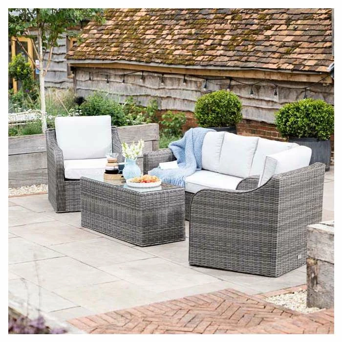 Dine, relax and entertain in style. Designed for modern outdoor living, this versatile set has deep, high-backed seating lined with thick, foam-filled cushions for unrivalled comfort and support.