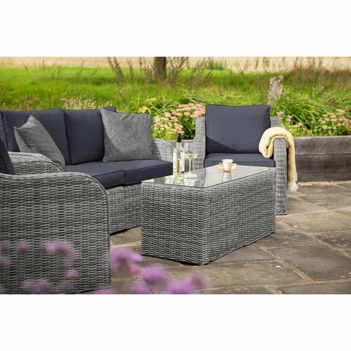Dine, relax and entertain in style. Designed for modern outdoor living, this versatile set has deep, high-backed seating lined with thick, foam-filled cushions for unrivalled comfort and support.