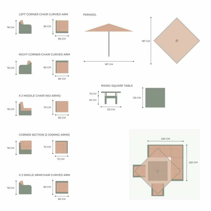 Built to last using a premium double-woven half weave rattan (a rare find) around a powder-coated aluminium frame, this is a set you’ll enjoy for years to come. Using the modular set pieces, you can style your furniture your way whatever the occasion.