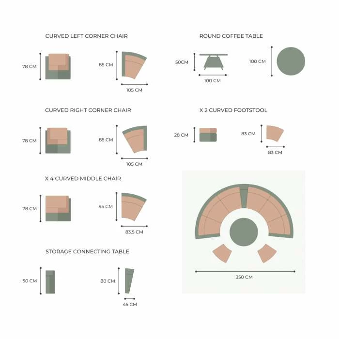 - 1 x Curved Right Corner Chair
