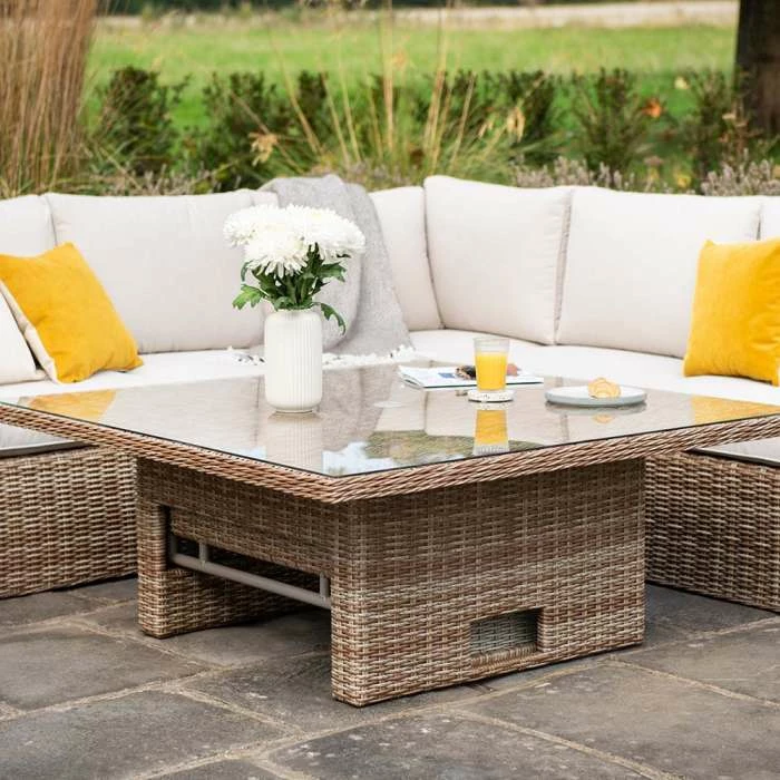 Built for convenience, every piece of this set can be adjusted to be used your way: the footstools double as extra seating when you need it and just change the height of the adjustable table to go from casual entertaining to comfy dining.