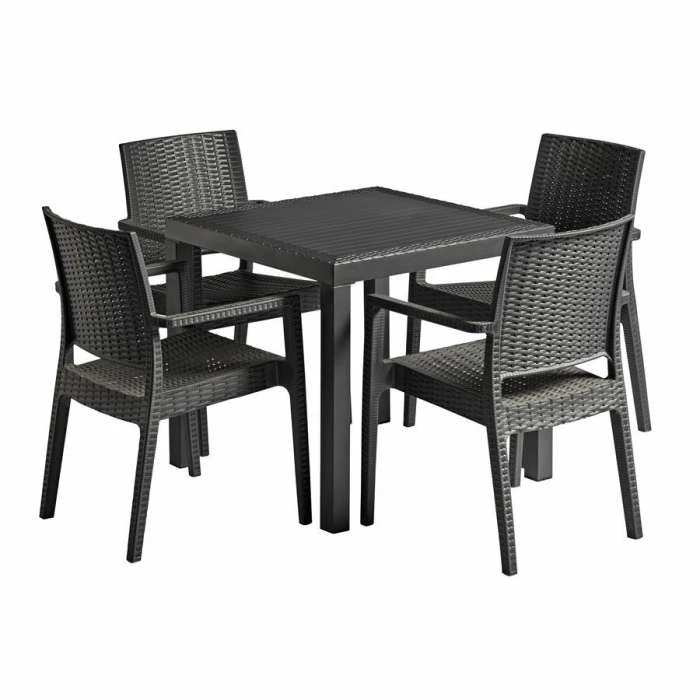 Rattan Effect Four Seater Table & Carver Chairs Garden Dining Set 80cm