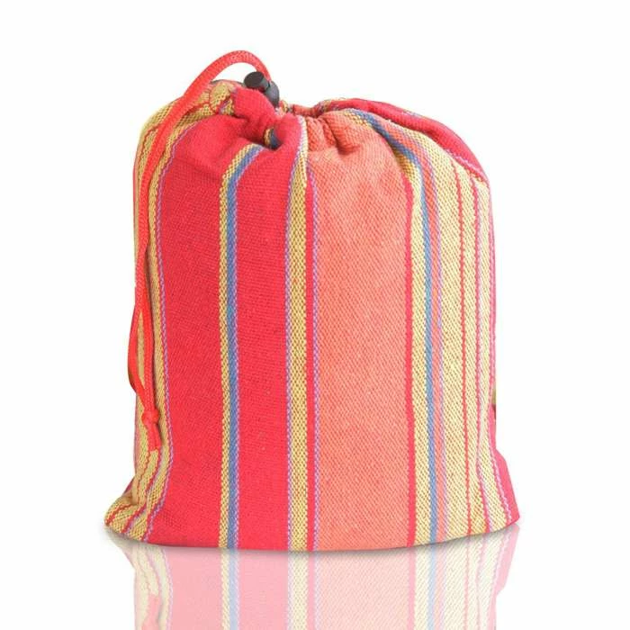 The Tortola Salsa Hammock comes with a handy carry bag, which helps you to store your hammock away easily when you aren’t using it. It also allows you to pack up your hammock and take it with you, perhaps on holiday or even just to your local park. The material is made from 65% cotton and 35% polyester, 320GSM which means that it will be a thick and therefore durable material; perfect for a hammock. It will carry a maximum load of 120kg, so that this hammock will be able to support a large weight, with support ropes helping you to attach your hammock safely wherever you decide to put it.