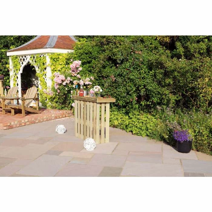 Simply unfold the side panels and fold down the hinged shelf and add the countertop. Well designed and practical, it makes a great centrepiece either as a bar or displayed against a wall. Shelving is ideal for glasses and drinks and designed with under shelf space for larger items. Convenient and handy, the Folding Garden Bar is easy to fold away and store. This multipurpose bar also makes a great potting table or BBQ side table. Made from timber and with a 10 year guarantee against rot, the Folding Garden Bar is perfect for entertaining family and friends
